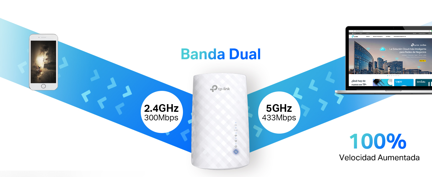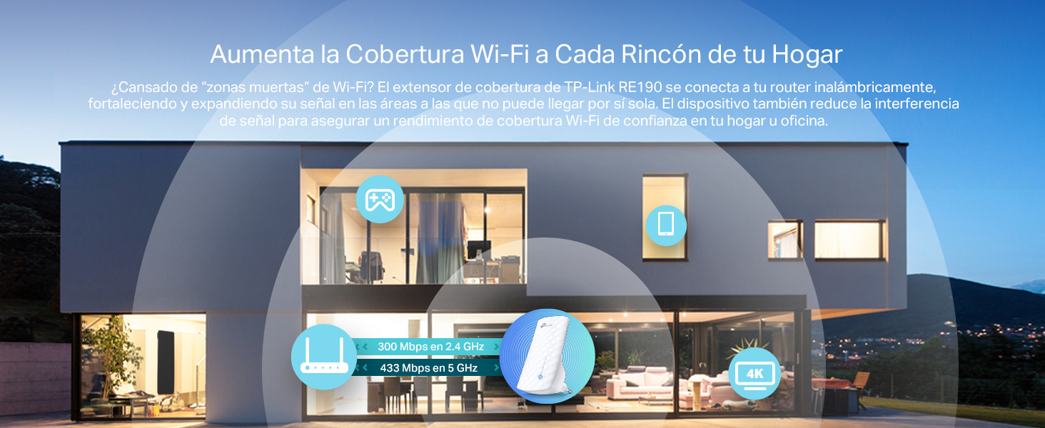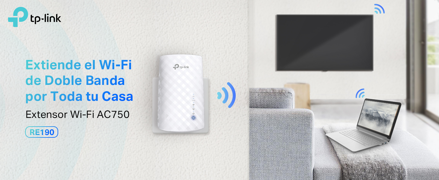TP-Link RE190 AC750 - Amplificador Señal WiFi, 433Mbps en 5GHz 300Mbps en 2.4GHz con EU Enchufe, WPS, Indicador LED de Señal,