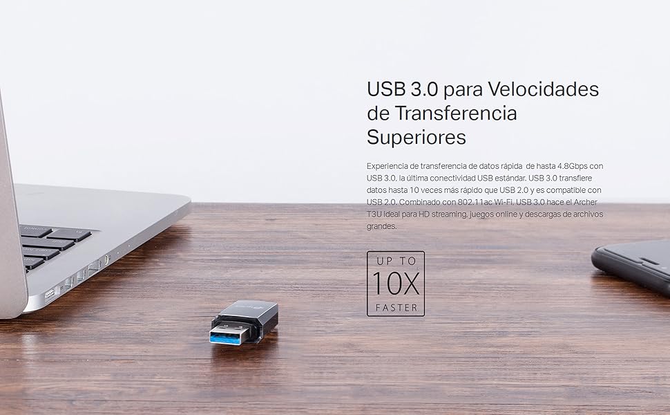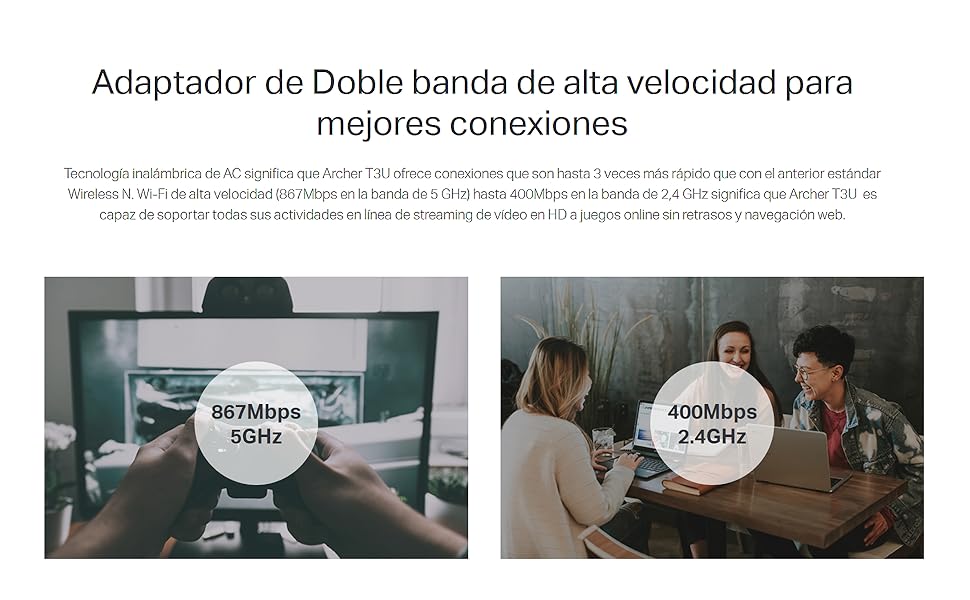 TP-Link Archer T3U - Adaptador Wi-Fi AC1300, Receptor Wi-Fi, Doble Banda 5GHz (867Mbps) y 2GHz(400Mbps), MU-MIMO, USB 3.0,