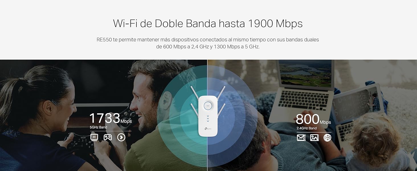 TP-Link RE550 - Mesh AC1900 Repeater, Dual Band WiFi, 1300Mbps/in 5GHz + 600Mbps/in 2.4GHz, WiFi Amplifier, App Control,