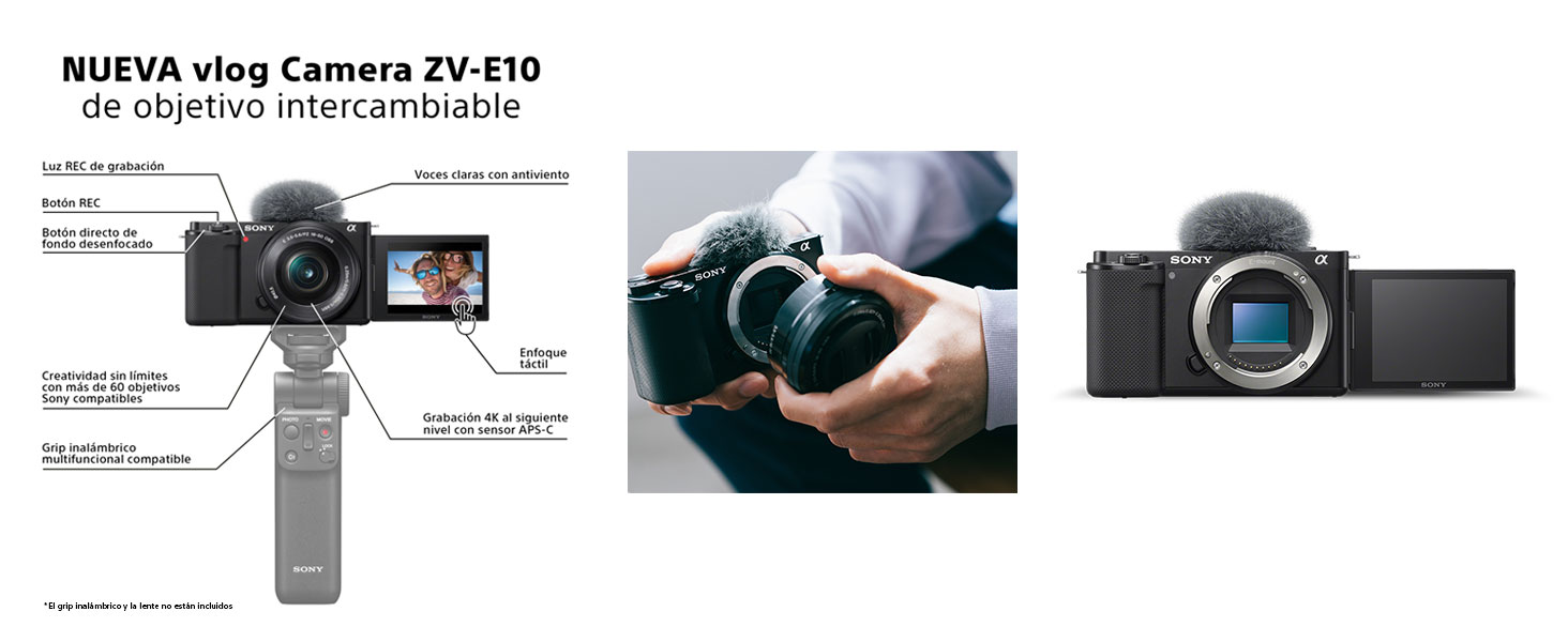La nueva cámara vlog de lentes intercambiables ZV-E10 está especialmente diseñada para vlogs y ofrece calidad de vídeo 4K y grabaciones a cámara lenta de 120p en full HD con una operación fácil. Con sus funciones intuitivas y su pantalla giratoria, es la cámara de vlog perfecta para todo tipo de creación de contenido. El micrófono direccional de 3 cápsulas con parabrisas capta tu voz claramente con menos ruido del viento. La ZV-E10 le ofrece más de 60 Sony Posibilidades objetivamente ilimitadas.